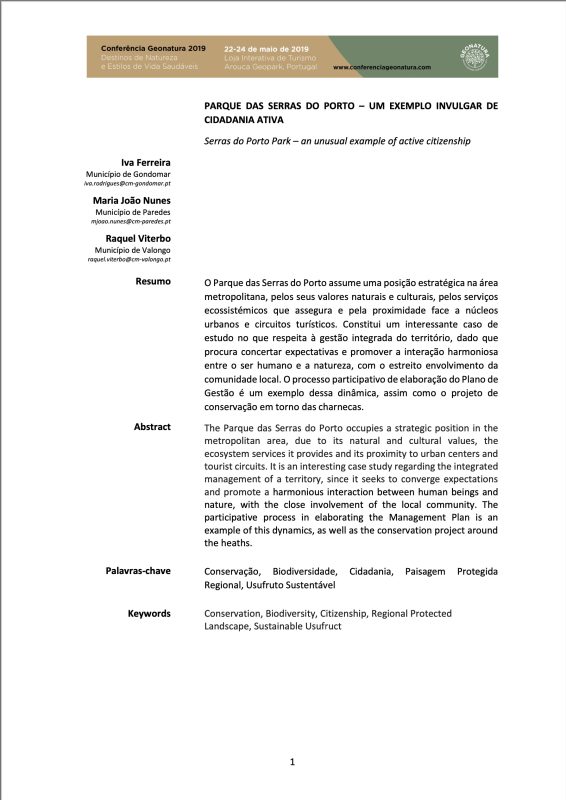 Diversos projetos e ações são viabilizados mediante parcerias com entidades terceiras, com o estabelecimento de compromissos claros para as partes envolvidas. Colaborações para atividades pontuais também podem ser consideradas. Os interessados devem contactar a Associação de Municípios Parque das Serras do Porto.